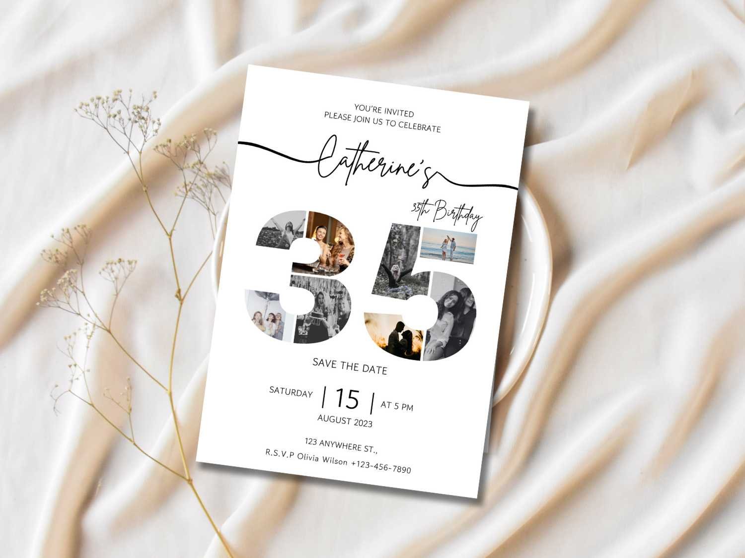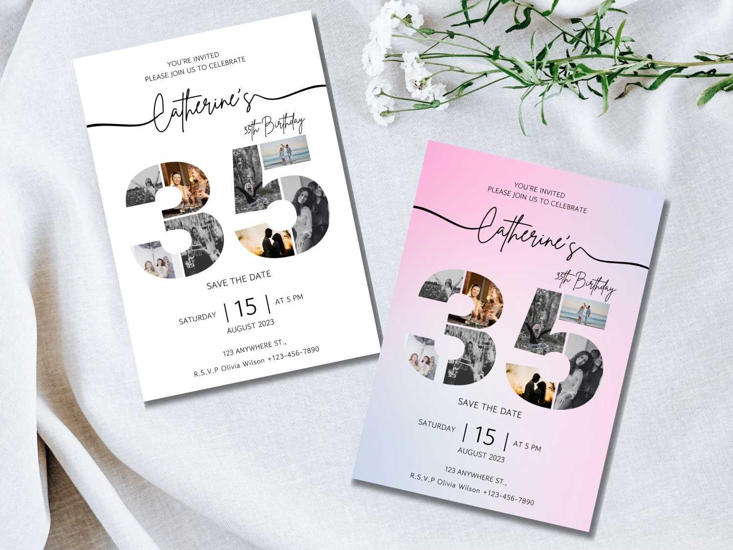 35th Birthday Invitation Template, Editable Digital Invite, Instant Download, Photo Collage 35, Pink & White Backgrounds, Canva Template