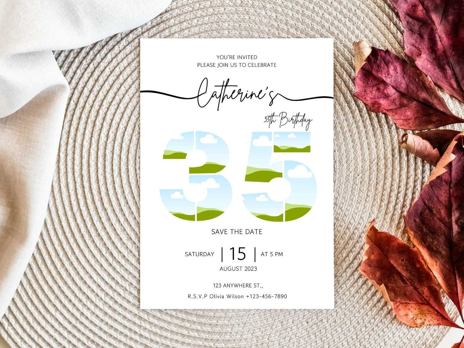 A downloadable, editable 35th birthday invitation template (PDF and Canva link)