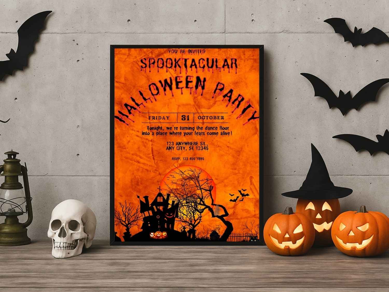 Kick off your spooky celebration with our Halloween Party Invitation! This editable Halloween invitation arrives as a fully customizable digital file. Use it as a Halloween party flyer or an invitation, just open the Canva editable invitation template and personalize the details in minutes (no design skills required).